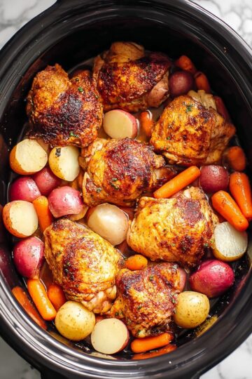 Slow Cooker Chicken Thighs with Potatoes and Carrots Recipe