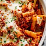 This Baked Rigatoni recipe features al dente rigatoni pasta enveloped in a rich tomato cream sauce with Italian sausage, bell peppers, garlic, and herbs, topped with melted mozzarella and Parmesan cheese. Baked to golden perfection, it makes a hearty and satisfying dish perfect for family dinners or special occasions.