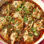 - Add Toppings and Serve: Remove from the oven and drizzle the dumplings with chili oil. Scatter with crushed peanuts, sliced scallions, cilantro leaves, crispy onions, and sesame seeds. Squeeze lime wedges over the top right before serving and enjoy your flavorful meal.