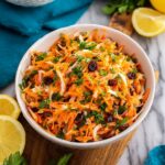 A refreshing and easy-to-make Carrot Apple Salad featuring shredded carrots and apples mixed with currants and a tangy mayonnaise dressing, perfect as a bright and healthy side dish.