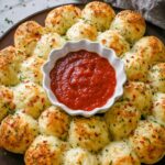 Cheesy Garlic Monkey Bread is a delicious pull-apart bread made with Rhodes frozen dinner rolls dipped in garlic butter and topped with gooey melted mozzarella cheese. This soft, buttery, and flavorful bread is perfect as a savory snack or appetizer, ideal for sharing with family and friends. It’s easy to prepare and baked to golden perfection, resulting in a warm, cheesy, and garlicky treat that pairs wonderfully with marinara sauce for dipping.