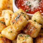 Parmesan Bread Bites are soft, cheesy, and garlicky bite-sized treats made from refrigerated pizza dough, brushed with a flavorful garlic butter mixture, and baked to golden perfection. Perfect for dipping in marinara sauce, they make a delicious appetizer or snack for any occasion.
