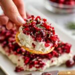 Cranberry Jalapeno Cream Cheese Dip is a festive and flavorful appetizer featuring a creamy base of whipped cream cheese topped with a fresh, tangy, slightly spicy cranberry jalapeno salsa. Perfect for holiday parties and gatherings, this dip combines tart fresh cranberries, spicy jalapeno, and fragrant cilantro for a deliciously unique treat.