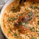 This creamy orzo with chicken recipe is a comforting one-pan meal combining tender chicken breasts, creamy Parmesan, and flavorful orzo pasta cooked in a savory broth. Enhanced with garlic, tomato paste, and baby spinach, it’s quick to prepare and perfect for busy weeknights.