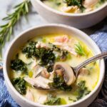 Creamy Paleo Chicken Soup with Mushrooms and Kale is a comforting and wholesome Whole30-compliant recipe. It features tender chicken thighs simmered with leeks, garlic, mushrooms, and kale in a rich coconut milk-based broth thickened with arrowroot starch. Flavored with fresh herbs and nutritional yeast, this dairy-free, paleo-friendly soup is perfect for a nourishing weeknight dinner.