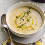 This rich and creamy potato leek soup combines sautéed leeks, tender Yukon gold potatoes, and a touch of heavy cream, blended into a velvety smooth and comforting bowl perfect for any meal.
