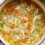 A comforting and flavorful Chicken and Rice Soup made with tender bone-in chicken breast, aromatic vegetables, and a blend of herbs and seasonings. The rice is cooked separately to prevent it from soaking up too much broth, allowing for perfect texture and easy storage. This classic soup is perfect for a cozy meal and freezes well for convenience.