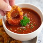 Crispy, golden fried calamari rings served with a zesty and spicy marinara sauce. This easy recipe marinates the calamari in milk, coats them in a seasoned flour mixture, and fries them to perfection before tossing with a flavorful parmesan and chili flake blend. The homemade spicy marinara complements the calamari beautifully, making it a perfect appetizer or snack for any occasion.