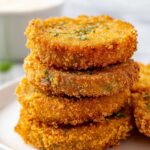 Fried Green Tomatoes are a classic Southern dish featuring firm, unripe green tomatoes coated in a seasoned breading, dipped in buttermilk, and fried until golden and crispy. Served with a flavorful remoulade sauce, this snack delivers tangy, crunchy, and savory bites perfect for any occasion.