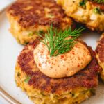 - Serve: Plate the crab cakes on a bed of spring mix with lemon wedges and extra dill alongside the Cajun aioli for dipping. Enjoy immediately while warm and crispy.