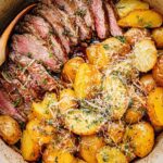 - Rewarm Potatoes and Serve: While steaks are resting, return the potatoes to the skillet to gently rewarm. After resting, slice the steaks against the grain and add the sliced meat back into the skillet with the potatoes. Optionally, sprinkle evenly with shredded Parmesan cheese for garnish. Serve immediately for best flavor and texture.