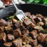 - Combine and Garnish: Pour the garlic butter sauce over the steak bites in the plate or skillet, toss well to coat evenly, and garnish with fresh chopped parsley before serving.