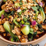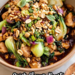 Garlic-Ginger Chicken Stir-Fry is a flavorful and quick Asian-inspired dish featuring tender chicken breast strips marinated in a savory garlic-ginger sauce. Enhanced with crisp baby bok choy, sweet red onions, and garnished with crunchy peanuts and fresh basil, this stir-fry is perfect served over jasmine rice or cauliflower rice for a balanced meal.