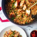 This One Pot Ginger Chilli Chicken Orzo is a flavorful, easy-to-make weeknight meal combining tender chicken thighs with aromatic ginger, garlic, and chili, tossed with orzo pasta in a spicy and savory sauce, finished with fresh cilantro and scallions for a vibrant touch.