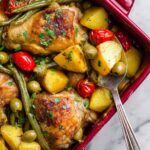 - Bake: Bake the assembled dish in the oven on the middle rack at 375°F (190°C) for 25 minutes. After this time, baste the chicken and vegetables with the pan juices, then continue baking for another 25 minutes or until the potatoes are fork-tender. If needed, bake an additional 5-10 minutes, depending on potato size and oven accuracy.