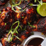 - Serve: Transfer the grilled chicken to a platter. Top with sliced scallions. Serve with reserved marinade and lime wedges on the side for squeezing.