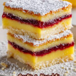 Delight in these tangy and sweet Lemon-Cranberry Bars, featuring a buttery crust topped with zesty lemon custard and a vibrant cranberry sauce swirl. Perfect as a festive dessert or a refreshing treat any time of year.