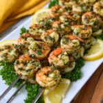 This grilled lemon herb shrimp recipe features extra-large shrimp marinated in a vibrant citrus and herb mixture, then grilled to perfection. The marinade combines fresh parsley, garlic, lemon zest, olive oil, and seasonings to create a flavorful and easy-to-make dish perfect for a quick weeknight dinner or entertaining guests.