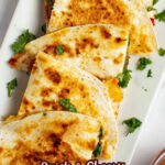- Serve: Remove from heat, cut each quesadilla into 4 slices, and serve warm with your choice of toppings such as sour cream, salsa, or pico de gallo.