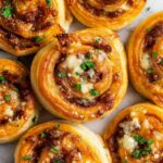 These Pesto Pinwheels are a delicious and easy appetizer featuring flaky puff pastry filled with savory basil pesto, prosciutto, mozzarella, and Parmesan cheese. Perfect for parties or a festive snack, they can be prepared ahead and baked to golden perfection with a sprinkling of fresh basil.