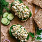 A refreshing and protein-packed Smashed Chickpea Salad featuring tangy feta, fresh herbs, and a creamy Greek yogurt dressing, perfect for a light lunch or side dish.