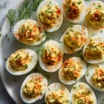 Southern Deviled Eggs are a classic, creamy appetizer featuring hard-boiled eggs filled with a smooth mixture of yolks, mayo, Dijon mustard, and dill relish, all topped with a sprinkle of paprika for a touch of color and flavor. Perfect for family gatherings and holiday parties.