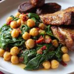 A flavorful and spicy vegetarian dish featuring chickpeas simmered with tomatoes, spices, and fresh spinach. Perfect as a hearty main course or a nutritious side dish, this recipe combines aromatic cumin, oregano, and turmeric with a touch of crushed red pepper for a delicious and healthy meal.