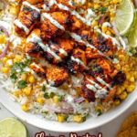This Street Corn Chicken Rice Bowl features tender marinated chicken thighs paired with grilled sweet corn, zesty lime, creamy Cotija cheese, and a flavorful chili-spiced sauce. It’s a vibrant, satisfying dish perfect for a fresh and customizable meal.