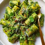 - Toss Pasta and Sauce: Return the green sauce to the pan. Add the cooked rigatoni directly from the pot. Toss well to coat the pasta evenly. Adjust thickness with additional pasta water if necessary. Taste and adjust seasoning with salt and extra grated parmesan if desired.