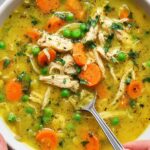 This Anti Inflammatory Turmeric Chicken Soup is a nourishing, flavorful one-pot meal made with tender chicken, fresh vegetables, vibrant turmeric, and creamy coconut milk. Perfect for meal prep or a comforting family dinner, this soup is packed with wholesome ingredients promoting wellness while being dairy free, paleo, and gluten free.