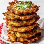 Delicious and crispy zucchini fritters made with fresh zucchini, onions, Parmesan, and a flavorful batter, fried to golden perfection and served with a tangy sour cream or Greek yogurt dip.